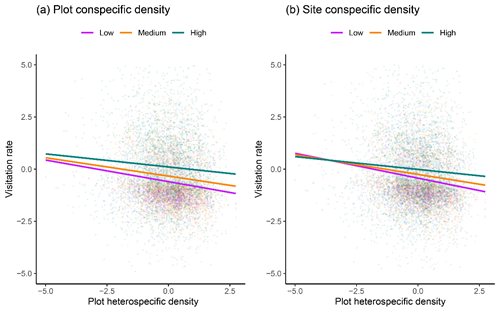 物種互作在群落構建過程中的作用及其對多物種共存的影響是生態學研究的核心科學問題之一。近年來,傳(chuan) 粉者介導的植物種間和種內(nei) 互作被引入到這一研究領域,很好闡釋了傳(chuan) 粉互作與(yu) 群落構建乃至物種共存的內(nei) 在科學聯係,對於(yu) 揭示物種多樣性維持機製有著重要意義(yi) ,但仍有許多需要明確的問題。如植物間傳(chuan) 粉互作關(guan) 係(競爭(zheng) 或者促進作用)往往都是密度依賴的,影響這種密度依賴模式的生態因素,例如空間尺度、傳(chuan) 粉生態位的重疊程度以及植物對傳(chuan) 粉者吸引能力的差異等都可能發揮著重要作用,但仍不明朗。 中國科學院武漢植物園植物繁殖生態學學科組聯合多個(ge) 研究機構人員,以橫斷山脈這一全球生物多樣性熱點地區的高山草甸開花植物群落為(wei) 研究對象,通過多年的連續監測實驗,對十餘(yu) 個(ge) 開花植物群落中的超過100種植物的開花密度、傳(chuan) 粉者構成以及訪問頻率等進行了統計和分析,在觀測樣方水平和植物群落水平上量化了植物的同種和異種花密度對其傳(chuan) 粉頻率的影響;並檢驗了植物的傳(chuan) 粉生態位和傳(chuan) 粉者吸引能力的差異與(yu) 傳(chuan) 粉者介導的植物間互作式樣和強度的密度依賴之間的關(guan) 係。 研究結果表明,植物傳(chuan) 粉頻率受到同種和異種花密度的影響,稀有種在樣方水平更易遭受種間競爭(zheng) ,但在群落水平則通過種間開花植物獲得促進效應(圖1)。同時,樣方水平的種間競爭(zheng) 對於(yu) 具有泛化傳(chuan) 粉係統的植物更為(wei) 明顯,對於(yu) 該地區最廣泛的熊蜂訪花植物而言,群落水平的種間促進更為(wei) 顯著(圖2)。此外,對於(yu) 傳(chuan) 粉者吸引能力弱的植物而言,種內(nei) 正密度效應更強。因此,該研究揭示了在開花植物多樣性極其豐(feng) 富的區域,傳(chuan) 粉密度依賴效應對於(yu) 維持稀有植物物種、促進植物多樣性起到了重要的平衡作用,而這種平衡作用又受到了空間尺度、傳(chuan) 粉生態位以及植物對傳(chuan) 粉者的吸引屬性的影響。 相關(guan) 研究成果以The interplay between scale, pollination niche and floral attractiveness on density-dependent plant-pollinator interactions為(wei) 題,在線發表於(yu) 生態學領域經典學術期刊Oecologia上。中國科學院武漢植物園葉忠銘副研究員為(wei) 第一作者,楊春鋒研究員和裏約熱內(nei) 盧植物園Pedro J. Bergamo博士為(wei) 通訊作者,武漢大學金曉芳博士、中國科學院武漢植物園操喻副研究員及何勇登博士生、西交利物浦大學鄒怡副教授參與(yu) 了本研究,研究工作還得到了中國科學院武漢植物園王青鋒研究員、西班牙地中海高等研究院Anna Traveset教授的指導。該研究得到了國家自然科學基金(31970253, 31770255, 31800194, 32170241)、中國科學院戰略性先導科技專(zhuan) 項(XDB31010000)等項目的資助。