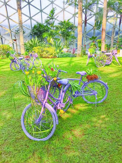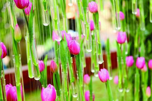 當天,1萬(wan) 多平方米的智能溫室內(nei) ,上萬(wan) 株各色鬱金香競相綻放。戶外,同樣種植了各色美麗(li) 的鬱金香,讓遊客在冬季也能感受花的浪漫。花展還打造了一個(ge) 在花田內(nei) 享受早餐的場景,布置9輛用鬱金香裝飾的自行車以及用鬱金香做的水簾。