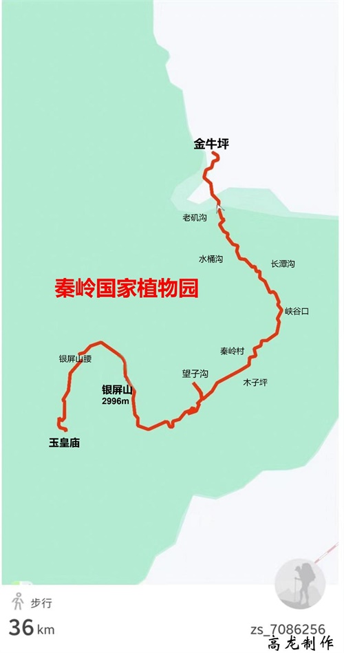 科考路線:秦嶺國家植物園周至園區-玉皇廟-銀屏山-望子溝-金牛坪。全程102km途經最高海拔2996m。