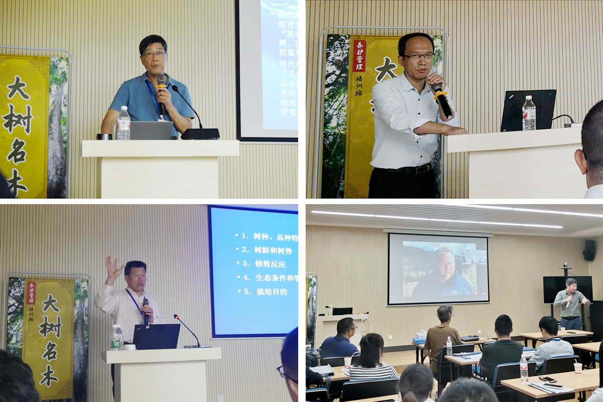 此次培訓應邀授課的教師包括:廣州市園林科學研究所原總工程師、古樹名木保護專(zhuan) 家張喬(qiao) 鬆研究員;北京園林科學研究院副院長、享受國務院政府津貼的古樹保護專(zhuan) 家叢(cong) 日晨教授;南京農(nong) 業(ye) 大學果樹專(zhuan) 家、博導陶建敏教授;邱園從(cong) 事大樹保護的專(zhuan) 家Tony Kirkham先生以及美國緬因大學助理教授章永江博士。授課老師不僅(jin) 有深厚的理論功底,還具有豐(feng) 富的實戰經驗,他們(men) 結合自身的工作經曆為(wei) 學員教授了許多大樹名木管護和果樹修剪方麵的理論、方法和實踐經驗,還介紹了許多新的理念和技術,學員受益匪淺。學員們(men) 感慨,培訓時間雖然隻有短短3天,但信息量大,實用性強,這種實戰經驗分享、理論與(yu) 實踐結合的培訓方式,具有很強的針對性,對今後的大樹名木管護以及植物養(yang) 護將會(hui) 起到積極的作用。