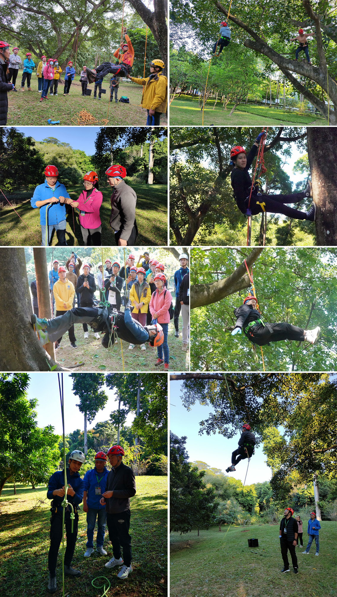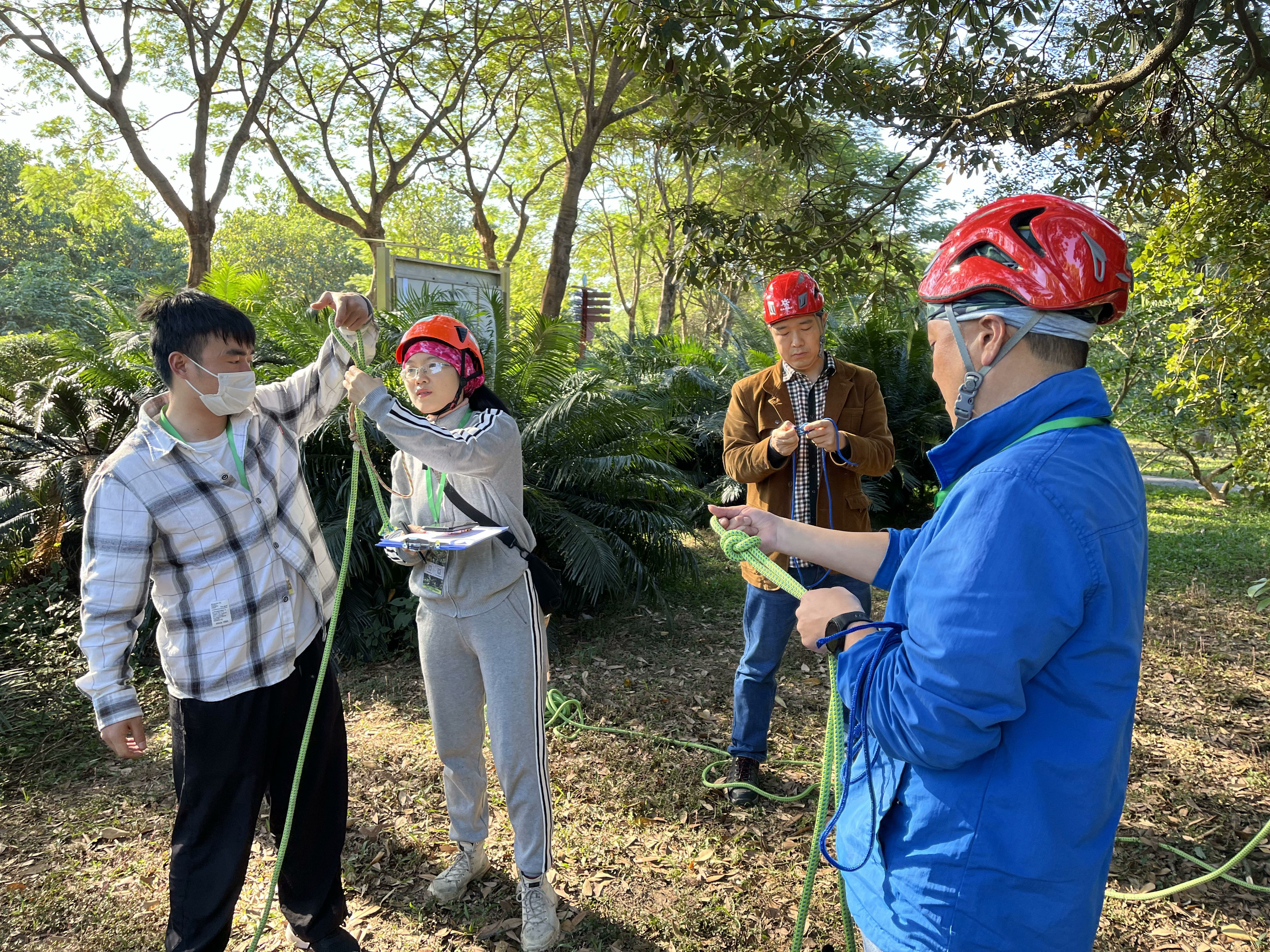 在技能實操方麵,邀請了來自國內(nei) 有名的廈門大學鄭達雄教練、湖北大學盧俊佩教練、趣攀樹創始人王慶節(子一)教練、澳門樹藝師團隊等,主要進行了攀爬初級技能及溜纜技術等相關(guan) 知識傳(chuan) 授。包括:豆袋拋擲、樹木保護器的安裝拆除、繩結的使用、傳(chuan) 統攀樹技術、上攀技巧、安全短繩的使用、如何在樹上進行自由活動等相關(guan) 技能。課程內(nei) 容全麵覆蓋植攀樹初級技術的各項工作,並注重啟發學員思考這項技能將來如何更好地服務植物園的工作,更好地發揮其在建立植物園樹木管理體(ti) 係中所承擔責任和使命。通過多樣的課程形式,如報告、實踐、討論、分享等,充分調動學員學習(xi) 的積極性和參與(yu) 性,提高學員的理論能力和實踐能力。