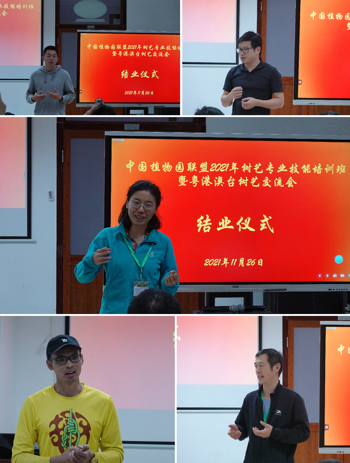最後,華南植物園園藝中心廖景平副主任闡述了在華南植物園建立樹藝師團隊的初衷,希望大家以培訓班為(wei) 契機,繼續互相學習(xi) 和交流,並把學習(xi) 的收獲帶回到自己的工作崗位,為(wei) 中國植物園的發展做出自己的努力。中國植物園聯盟培訓主管楊璽代表中國植物園聯盟秘書(shu) 處表達了對結業(ye) 學員的祝賀,並感謝了授課講師的大力支持和承辦方的精心安排。稍後,廖景平和楊璽為(wei) 所有學員頒發了結業(ye) 證書(shu) 。